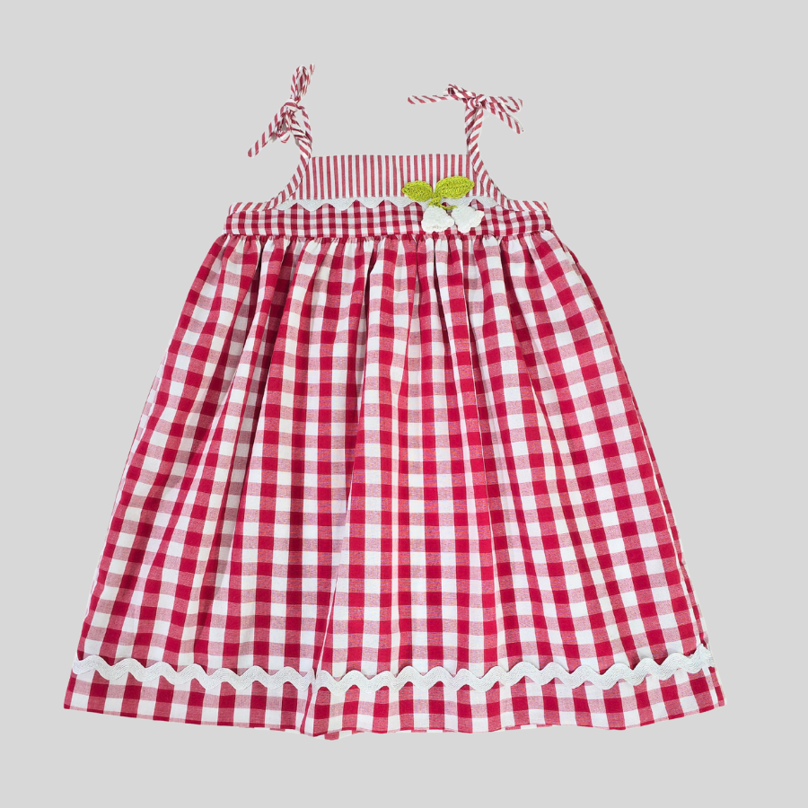 Vestido confeccionado em algodão, garantindo frescor e suavidade na pele da sua princesa.
